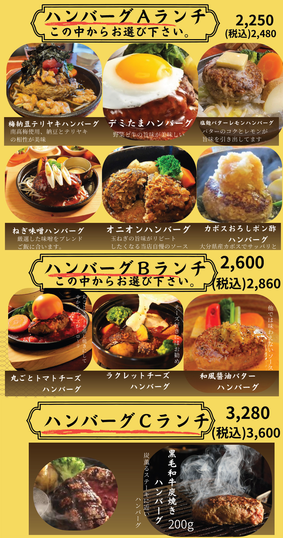 ハンバーグは次の中からお一つお選びください